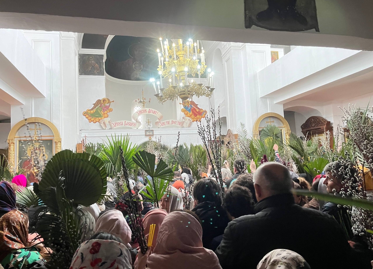Верующие собрались под сводами храма, чтобы освятить ветви вербы и молитвенно встретить начало Страстной седмицы.