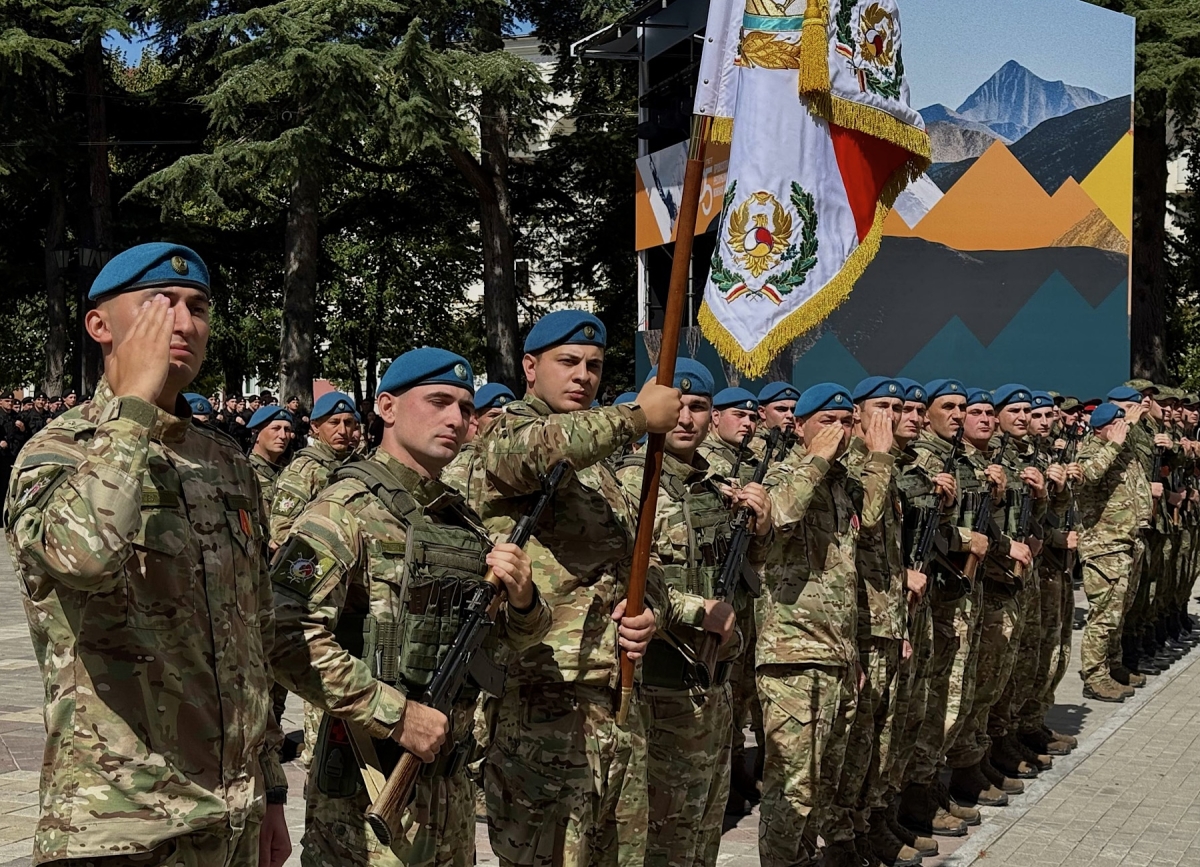 Делегация Абхазии, возглавляемая президентом, также посетила военный парад по случае 35-летия провозглашения Республики Южная Осетия.