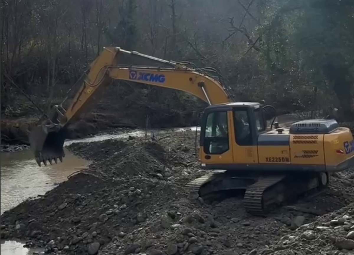 Сухум. 18 декабря 2025. Апсныпресс. Работы по расчистке русла реки Парнаут на участке протяженностью до 700 метров ведутся в селе Верхний Гулрыпш.