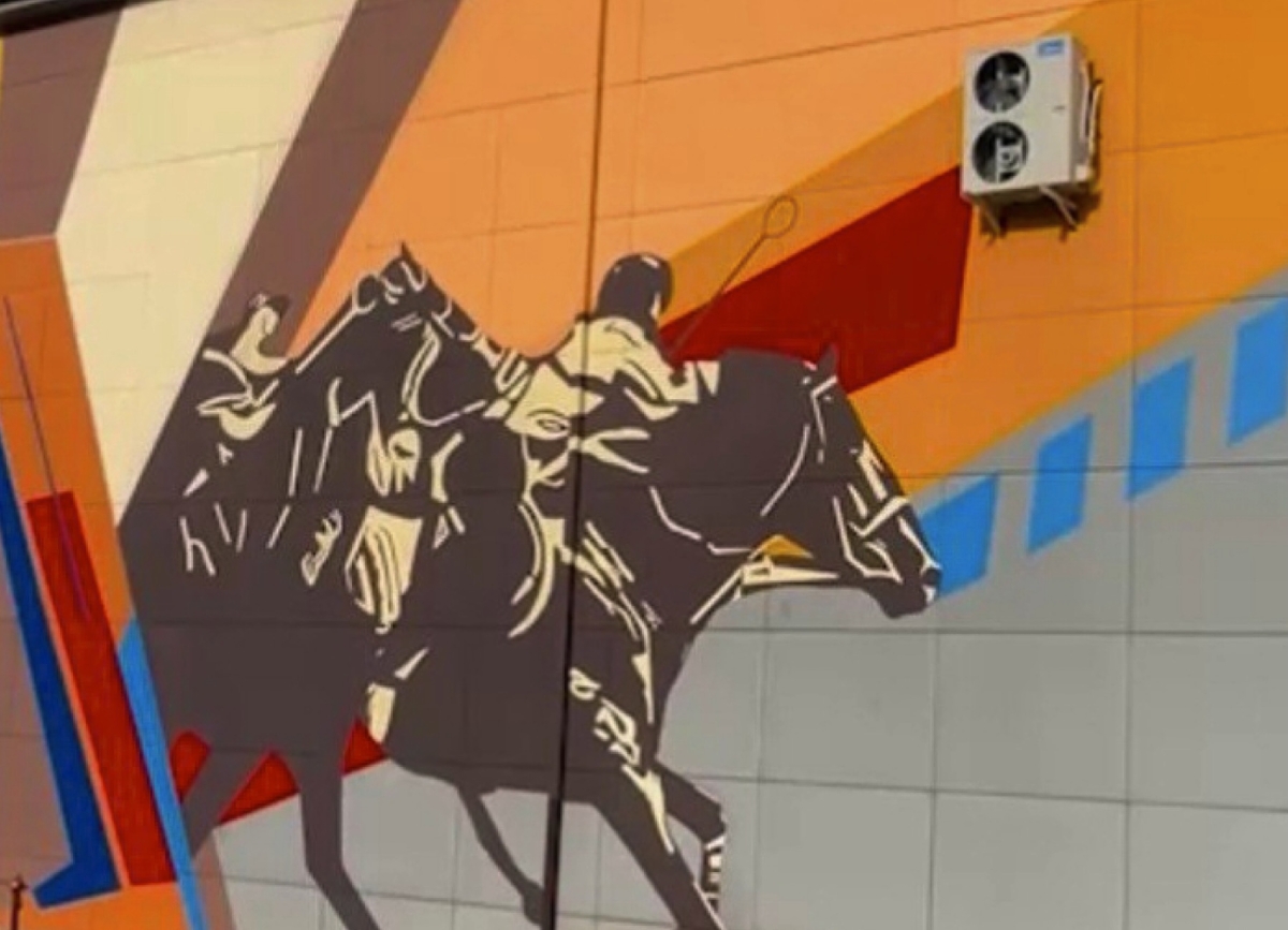 Арт-объект на фасаде местной спортшколы создали в рамках фестиваля «Мандарин». На картине изображены всадники, так авторы подчеркивают значимость конного спорта в абхазских традициях. Над проектом работали художники команды Street Art Abkhazia Арсоу Берзения и Кадыр Тванба.