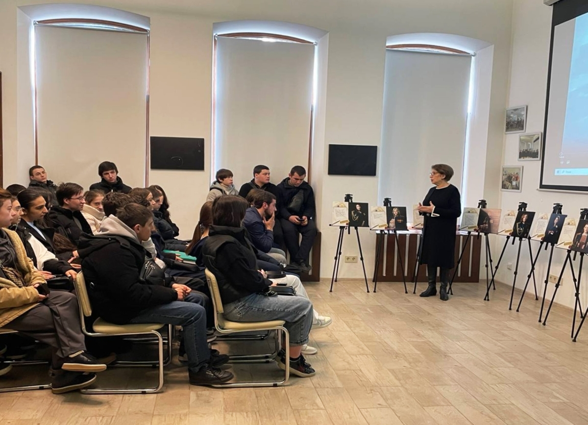 Сухум. 28 января 2026. Апсныпресс. Показ фильма Игоря Генералова «Тихий тыл» и презентация фотовыставки «Жены героев» прошли в Сухумском государственном колледже.